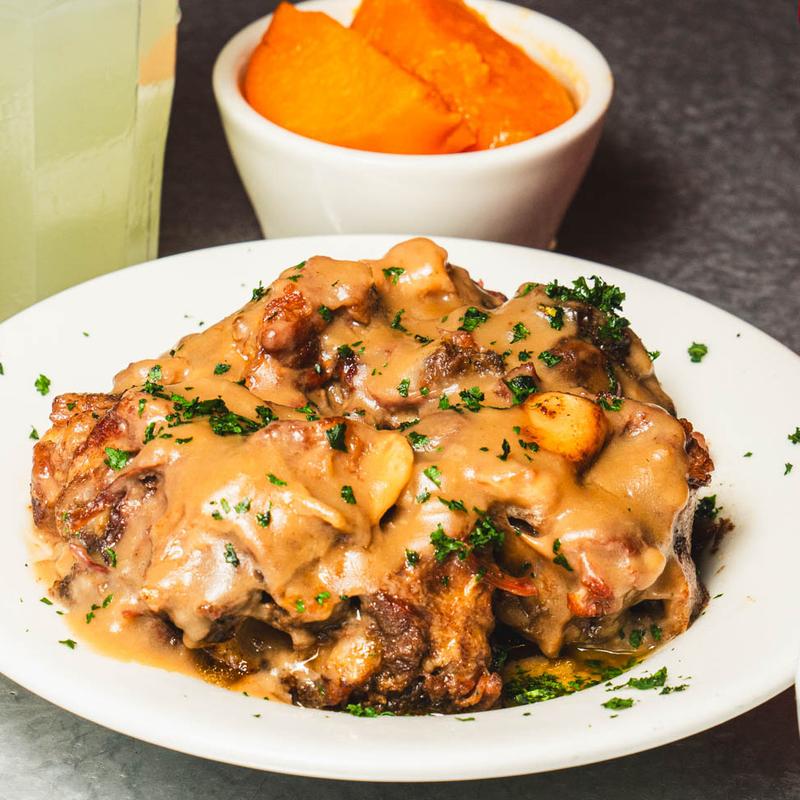 This place doesn't disappoint. No need to worry about the portions they give you plenty of food. Flavor is there. We enjoyed the service & atmosphere. The waiter was awesome!. Pork chop dinner came w/ 3 sides & 3 pork chops. We left stuffed w/ plenty left overs